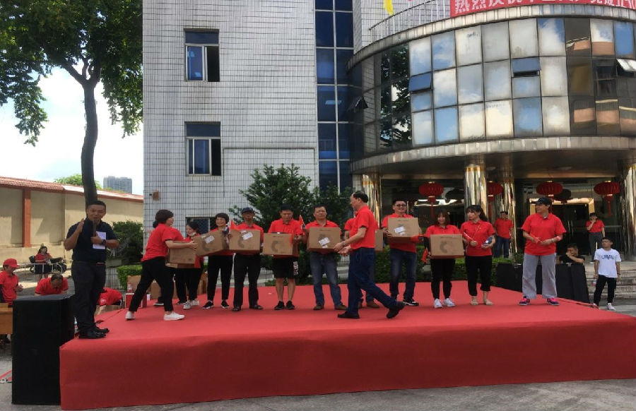 圖為領(lǐng)導(dǎo)為獲得第一名的團(tuán)隊(duì)頒發(fā)獎(jiǎng)品