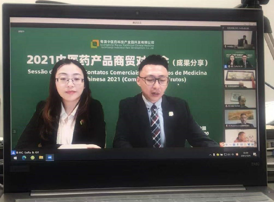 為了深化對(duì)接成果、鞏固溝通渠道,北京時(shí)間12月9日晚7時(shí),粵澳合作中醫(yī)藥科技產(chǎn)業(yè)園成功舉辦了“2021中醫(yī)藥產(chǎn)品商貿(mào)對(duì)接會(huì)(成果分享)”,定向邀請(qǐng)通過產(chǎn)業(yè)園平臺(tái)真正實(shí)現(xiàn)走出去的企業(yè),與來自巴西、葡萄牙、莫桑比克、佛得角及泰國的政府部門代表、專家和經(jīng)銷商60余人一同展示中醫(yī)藥服務(wù)貿(mào)易成果,分享中醫(yī)藥國際合作經(jīng)驗(yàn)。